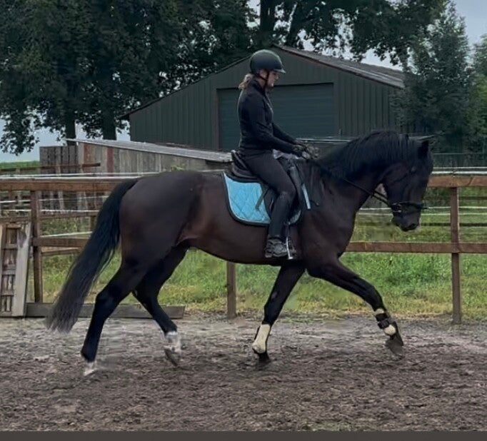 Op dit moment word hij gereden door Daniek met name dressuurmatig en af en toe lekker naar buiten en een sprongetje.